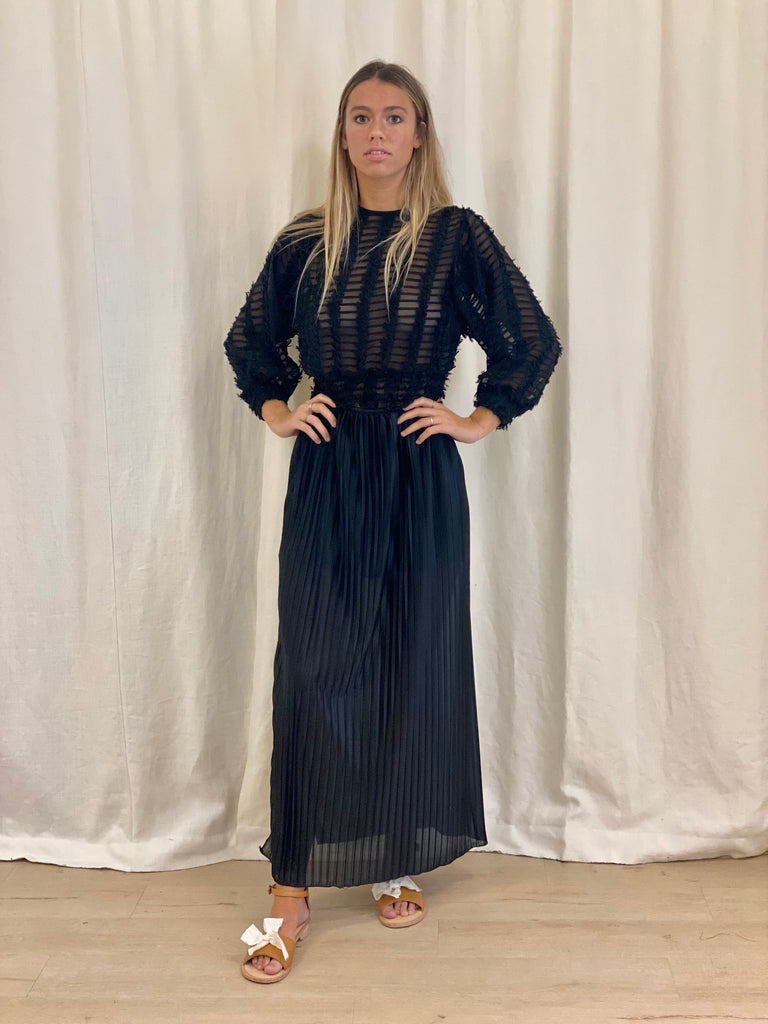 The new Mirabelle Top is a romantic slightly sheer chiffon fabric with a gathered elastic waist. Pair it with our Vida Skirt for the perfect look.